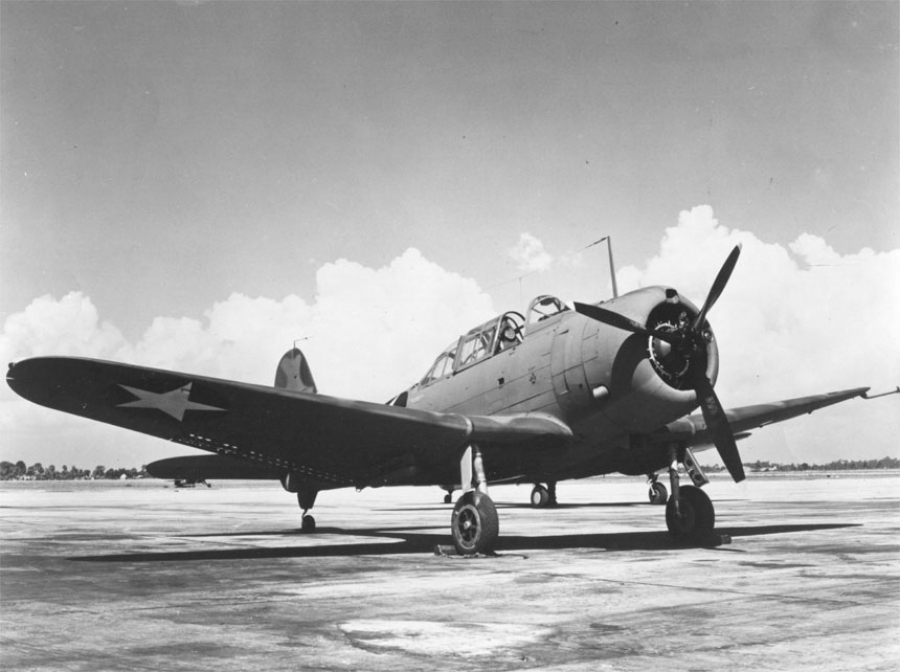 Armament: Two .50-cal. fixed machine guns in the nose and twin .30-cal. flexible machine guns in rear cockpit; 1,200-lb. bombs (in Java, A-24s one Dutch 600-lb. bomb on the centerline and one 110-lb. bomb on each wing)